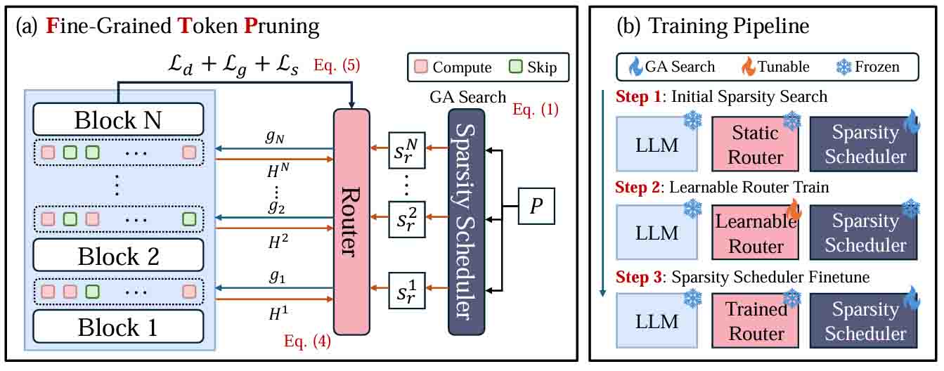 FTP: A Fine-grained Token Pruner for Large Language Models via Token Routing