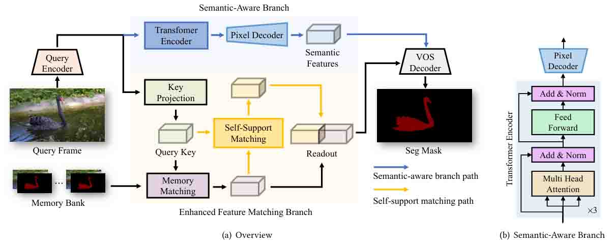 SASSM: Semantic Awareness and Self-Support Matching for Semi-Supervised Video Object Segmentation